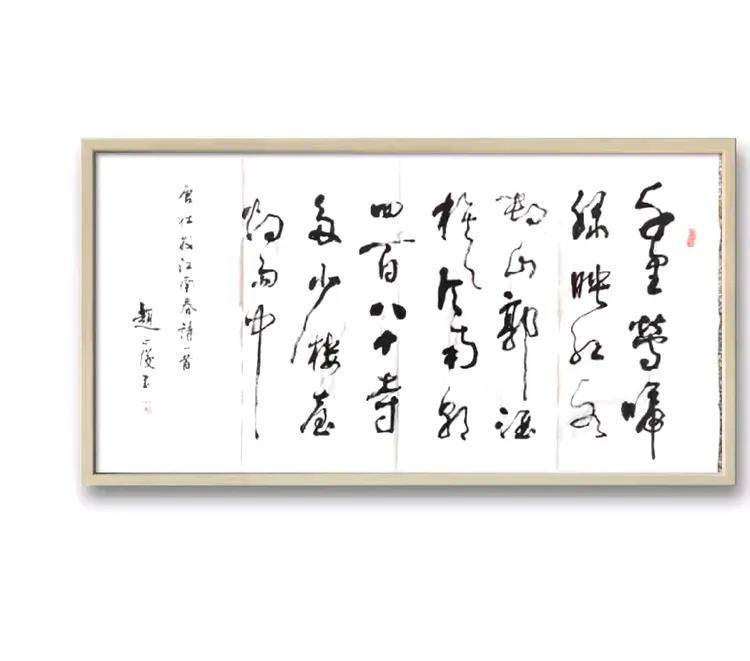 赵正俊的审美情趣,偏于雄强一格,崇尚“执铁板铜琶,歌大江东去”的豪迈与凝重,天性使然。“万里风云三尺剑,一庭花草半床书”是他这类风格的代表作品,字里行间流露出的是与生俱来的质朴和沉稳。虽然如此,他对“二王”一派风格和晚明恣肆跌宕的表现主义浪漫书风,也有着极大的兴趣,偶尔涉笔也有可观之处,凸现了他对帖学一派的敏锐感悟。