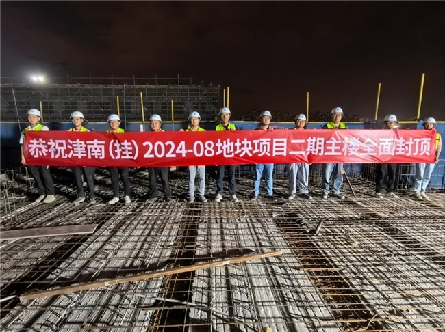 建工网讯 (通讯员 耿荣辛)秋高气爽,硕果盈枝。近日,随着最后一方混凝土浇筑完成,天津津南(挂)2024-08地块项目主体结构全面封顶,以实际行动向国庆献礼。